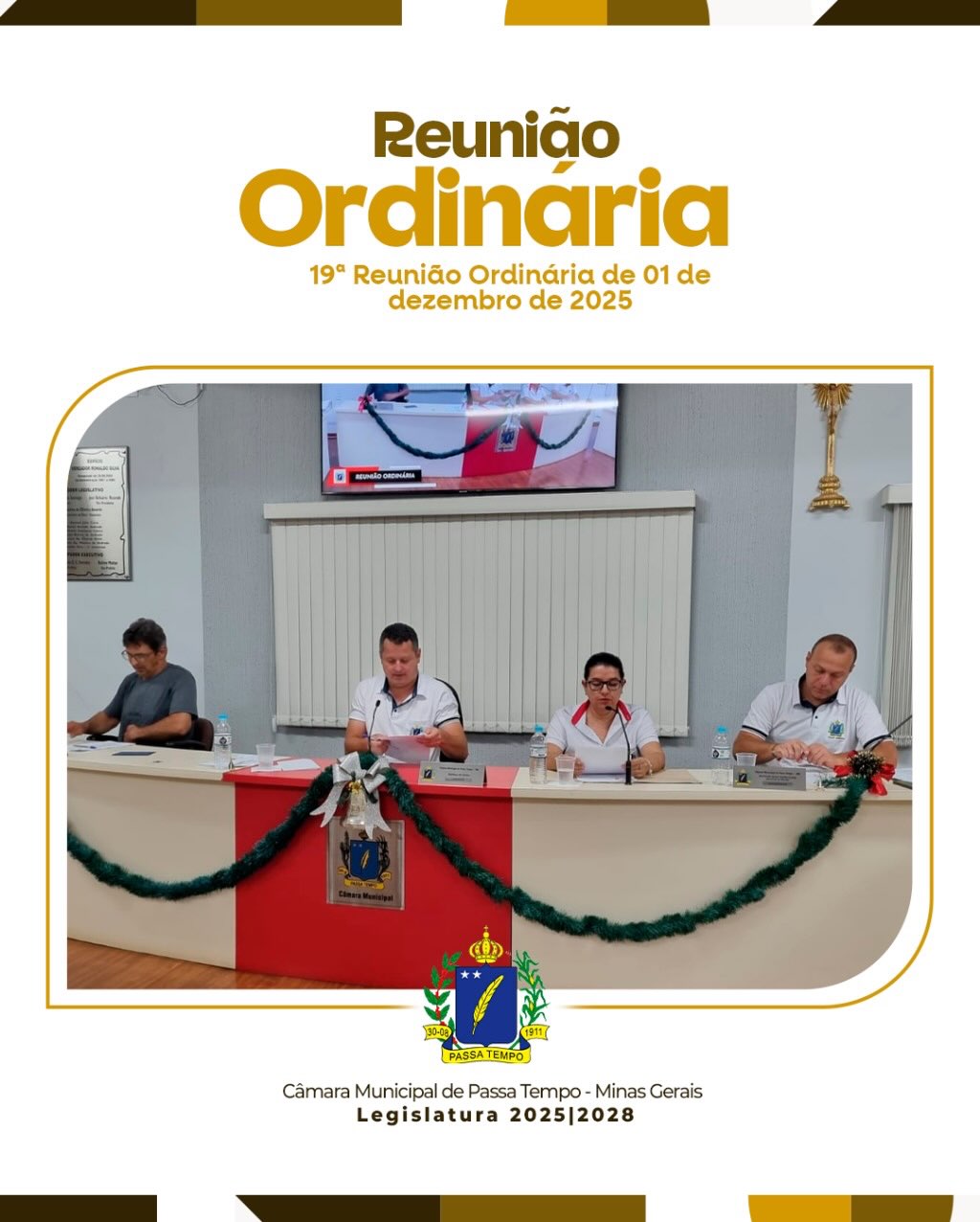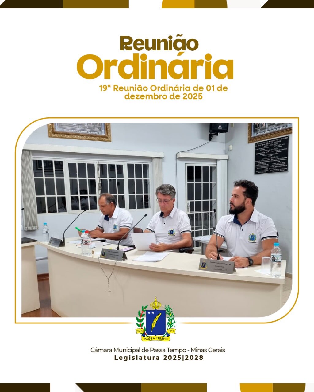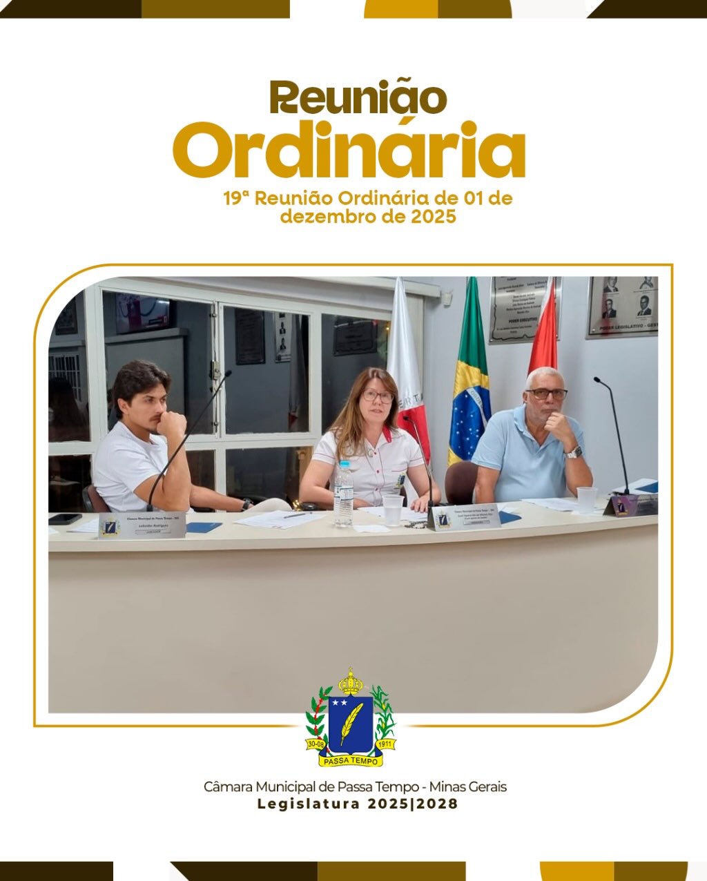A Câmara Municipal de Passa Tempo realizou no dia 1º de dezembro de 2025 a 19ª Reunião Ordinária, com todos os vereadores presentes.